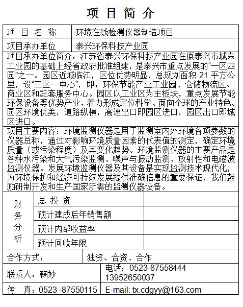 環(huán)境在線檢測(cè)儀器制造項(xiàng)目
