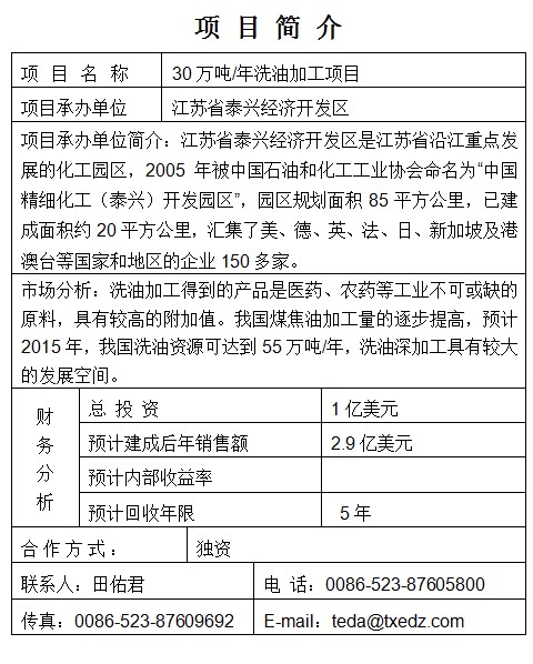 30萬(wàn)噸/年洗油加工項(xiàng)目