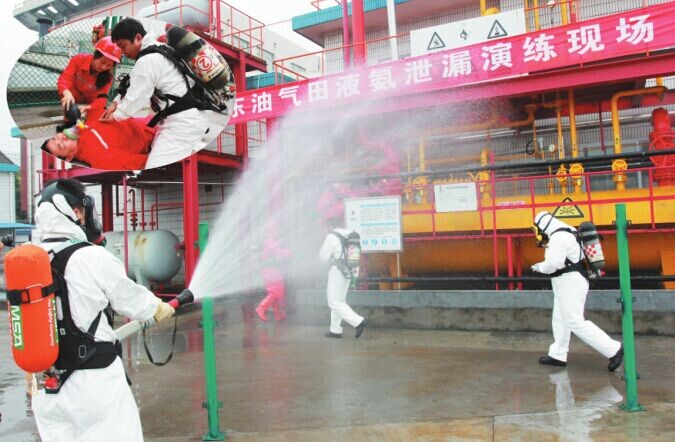 ![]() 接到警報后,公司立刻啟動應急預案,并向黃橋消防中隊請求增援。救援現場,工作人員各項救援緊張有序。在防氨服、空氣呼吸器、高壓水槍等設備的輔助下,工作人員將事故險情暫時控制住。黃橋消防中隊及時趕到,消防官兵和華揚應急工作人員一道,對發生事故的液氨儲罐進行噴水稀釋。經過半小時的救援,氨氣泄漏得到了有效控制。 整場演練活動讓現場觀摩的24家企業負責人留下印象深刻。江蘇九天光電有限公司企管經理何峰表示:“我們企業也是剛剛起步,對照這次演練要求,我們感覺到還有很多不足之處,我們將把安全后續工作作為重中之重來抓,確保不出任何安全事故。” |