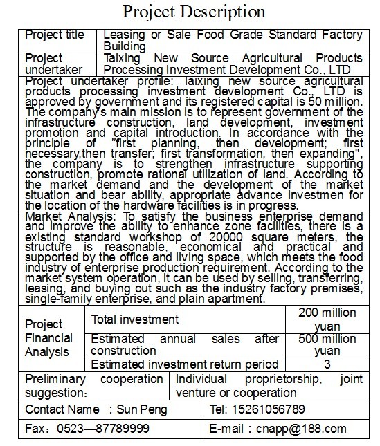 食品級標(biāo)準(zhǔn)廠房租賃、出售