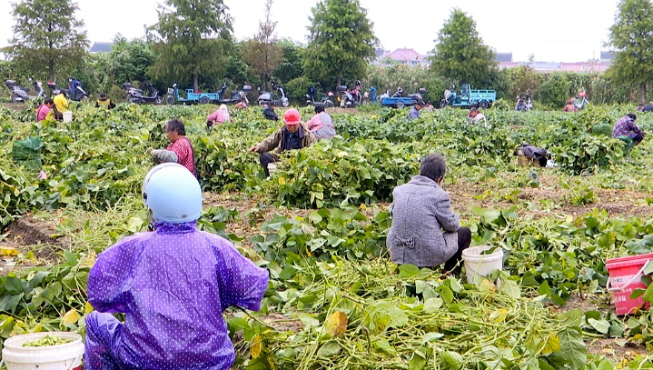 隨著秋茬毛豆成熟的季節(jié)到來(lái),泰興市廣陵鎮(zhèn)興寧社區(qū)的300畝毛豆種植區(qū)迎來(lái)了豐收。“目前,每天有100多人在這里采摘毛豆,畝產(chǎn)量可達(dá)1300斤左右,主要銷往江南地區(qū)的蔬菜市場(chǎng)。村民們通常從早上6點(diǎn)開(kāi)始工作,一直忙到下午5點(diǎn),忙得多的日收入超過(guò)100元。”社區(qū)工作人員馬娟介紹。