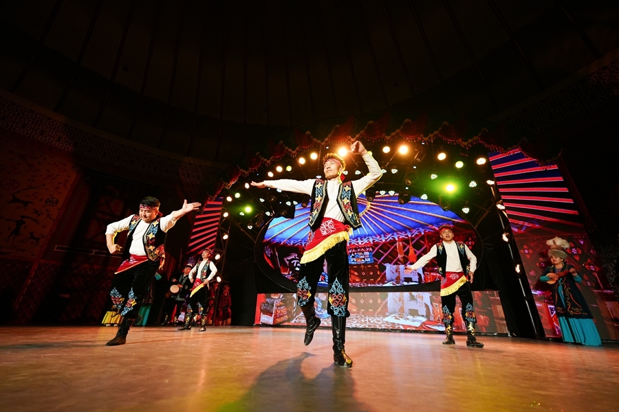 演員在位于新疆阿圖什市的瑪納斯史詩大劇院為游客演繹《瑪納斯》(2025年4月22日攝)。新華社記者 徐宏巖 攝 展廳內,習近平總書記深有感觸地說:“中華文明博大精深、源遠流長,是由各民族優秀文化百川匯流而成。我們要好好研究新疆歷史,真正認識到新疆歷史是中華民族交往中形成的歷史,從而也更有力地證明中華民族多元一體。” 中華文明璀璨浩瀚,文化認同是最深層次的認同。在2020年9月召開的第三次中央新疆工作座談會上,習近平總書記提出“文化潤疆”,“就是要從根本上切實解決政治認同、人心向背的問題”。 習近平總書記強調,要加強中華民族共同體歷史、中華民族多元一體格局的研究,將中華民族共同體意識教育納入新疆干部教育、青少年教育、社會教育,教育引導各族干部群眾樹立正確的國家觀、歷史觀、民族觀、文化觀、宗教觀,讓中華民族共同體意識根植心靈深處。 核心地帶 樞紐地帶 新疆,地處古絲綢之路的核心地帶。 2014年4月,在共建“一帶一路”倡議提出半年之后,習近平總書記來到新疆考察。總書記強調,新疆在建設絲綢之路經濟帶中具有不可替代的地位和作用,要抓住這個歷史機遇,把自身的區域性對外開放戰略融入國家絲綢之路經濟帶建設、向西開放的總體布局中去。 “如果絲綢之路經濟帶建設起來,新疆將可能成為繁華的中心。不要說別的,烏魯木齊現在是方圓1500公里最大的城市,到那時,將是一個怎樣的景象?”總書記的描述,深深鼓舞著新疆各族干部群眾。