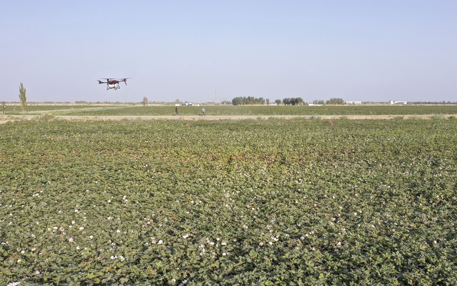 在新疆尉犁縣興平鎮達西村一處高標準農田,種植戶用無人機噴灑脫葉劑(2022年9月20日攝,無人機照片)。新華社發(汪志鵬 攝) 在信中,習近平總書記指出,達西村的發展變化說明,有黨的好政策,有各族群眾齊心奮斗,就一定能讓鄉親們過上舒心幸福的生活。 2014年,習近平總書記去到喀什地區的疏附縣阿亞格曼干村,在院子里,同鄉村干部和村民圍坐一起拉家常。2022年,習近平總書記去到烏魯木齊天山區固原巷社區,在居民家里,問醫療、談教育,說收入、話變遷…… “我來看你們,就是要驗證黨的惠民政策有沒有深入人心、是否發揮了作用。” “發展要落實到改善民生上,落實到惠及當地上,落實到增進團結上。” “凡是符合人民群眾愿望的事,就是我們黨奮斗的目標。我祝愿你們在黨的政策扶持下生活得更加幸福。”習近平總書記的話語溫暖著新疆各族人民的心。 |