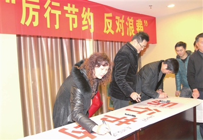 ![]() 圖為我市酒店負責人集體簽名。記者 張宏偉 攝 中央要求厲行節約、反對浪費,全國各地都在積極響應,我市也迅速行動。2月2日,市餐飲行業協會召開全市餐飲行業“厲行節約,反對浪費”動員會,在全市60多家酒店開展“光盤行動”,掀起了節約之風,杜絕“舌尖上”的浪費。 “餐飲行業協會舉行文明餐桌行動和‘光盤行動’,主要目的是動員泰興餐飲人從我做起,從現在做起,從源頭上杜絕浪費。”市餐飲協會會長吳長元說。 據了解,為響應“厲行節約、反對浪費”的號召,連日來,我市各餐飲企業積極行動,不僅舉行了集體簽名活動,向全市所有酒店發出“厲行節約,反對浪費”的倡議書,還出臺了一系列抵制浪費的具體措施。 |