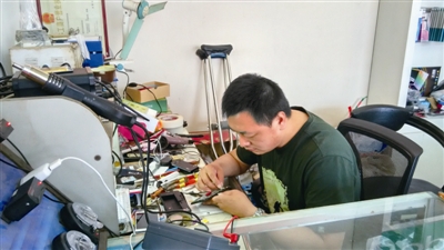 為謀生去南京學(xué)手機(jī)修理,回來后在集鎮(zhèn)上開了家小店,靠著不斷鉆研和誠信經(jīng)營,生意越來越紅火。一次偶然的機(jī)會,腿腳不便的他被推薦去參加比賽,結(jié)果獲得了泰州和省里的冠軍。日前,泰興殘疾青年朱新泉代表我省參加全國殘疾人技能大賽,摘得了“探花”。 殘疾青年南京“學(xué)藝” 今年40歲的朱新泉家住泰興市張橋鎮(zhèn)匡莊村。因?yàn)橹w殘疾的緣故,初中畢業(yè)后,父親讓他去學(xué)一門手藝。當(dāng)時家用電器越來越多,因此朱新泉選擇了修理家電,因知識基礎(chǔ)薄弱,所以他特意到南京航空航天大學(xué)脫產(chǎn)學(xué)習(xí)了2年多時間。 朱新泉回來后,在家門口掛起了維修家電的招牌。雖然他手藝不錯,但生意卻一直沒有好起來。閑得難受時,他就騎助力車去幫人家送貨。妻子殷桂華幫他分析,家電普及后價格也下落了,因此很多人家電壞了就直接去買新的,導(dǎo)致家電修理市場萎縮了。 在妻子的建議下,朱新泉第二次去南京“學(xué)藝”,這次選擇的是維修手機(jī)。盡管當(dāng)時手機(jī)用戶很少,但夫妻倆都看中了手機(jī)維修業(yè)的市場前景。有了修家電的基礎(chǔ),朱新泉只花了半年時間就學(xué)會了修理手機(jī)。 2000年,朱新泉在張橋集鎮(zhèn)大街上租了一間店面,沒想到生意慘淡。更令他著急的是,遇到棘手的壞手機(jī)無人請教,只好自己琢磨。 誠信為本贏得顧客 “我不相信自己做不好。”朱新泉下決心鉆研技術(shù),為此買了許多專業(yè)書籍回來“啃”。遇到不會修的手機(jī),他就騎助力車去泰興城里請教同行。為了吸引顧客的注意,他不惜代價租了一間更醒目的店鋪。 朱新泉待人誠懇,技術(shù)越來越精,慢慢他的生意好了起來。 “誠信為本。”朱新泉說,他用誠信換取顧客的信任。因?yàn)槭謾C(jī)是現(xiàn)在很多人必備的通訊工具,所以能在短時間修好的手機(jī)他從不拖延,哪怕不吃飯也要給人家修好。如果遇到麻煩的手機(jī),朱新泉會對顧客說清楚,并在承諾的時間內(nèi)修好。 三次參賽三度獲獎 “參加比賽純屬偶然。”朱新泉說,去年夏天,一個顧客來他店里修理手機(jī),他很快幫對方修好了手機(jī)。臨走時,對方發(fā)現(xiàn)自己是一名殘疾人,于是建議他去泰州參加殘疾人職業(yè)技能大賽。后來得知該顧客是殘聯(lián)工作人員。 去年7月,朱新泉代表泰興去泰州參加殘疾人職業(yè)技能大賽,輕松摘得手機(jī)維修項(xiàng)目的桂冠。 此后不久,朱新泉又代表泰州去參加省殘疾人職業(yè)技能大賽,結(jié)果再次將冠軍攬入囊中。因此,他獲得了參加全國殘疾人職業(yè)技能大賽的資格。 “全國比賽難度很大!”朱新泉說,本次大賽維修的是一款三星智能手機(jī),設(shè)置的故障是手機(jī)維修中較難處理的黑屏和不充電。 經(jīng)過2小時10分鐘的努力,朱新泉最終殺出重圍獲得了第三名。 記者 姚翔 通訊員 張倫 朱軍 文/圖 |