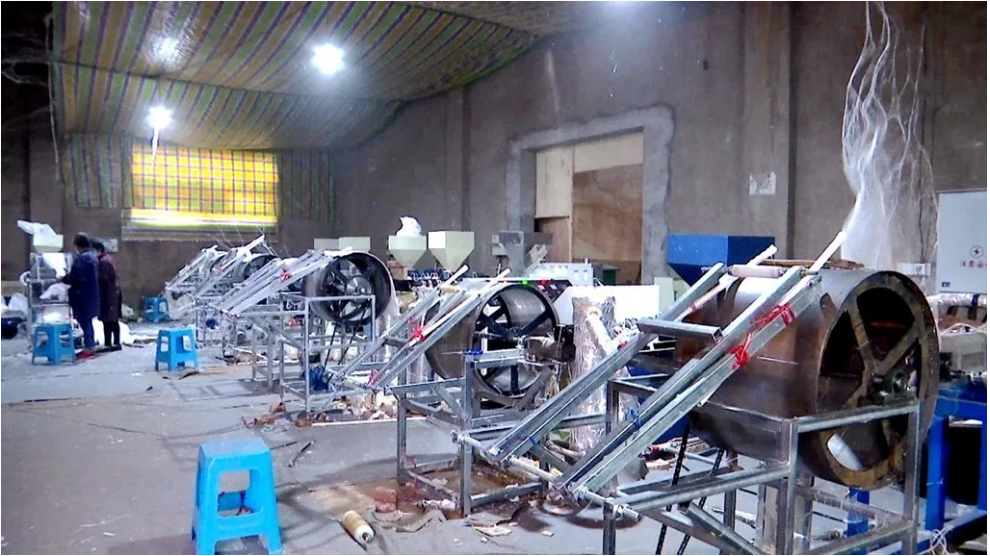 泰興市元馬線路邊的一處廢棄廠房內,十幾臺機器正在等待關停,該作坊4月20日開始生產,到目前為止已經生產了900公斤左右的熔噴布成品,銷售出去近600公斤。這樣的小作坊大多設立在臨時租賃的廢舊廠房內,不僅生產出來的熔噴布達不到產品質量標準要求,消防隱患、環境污染等問題也無法得到有效控制。