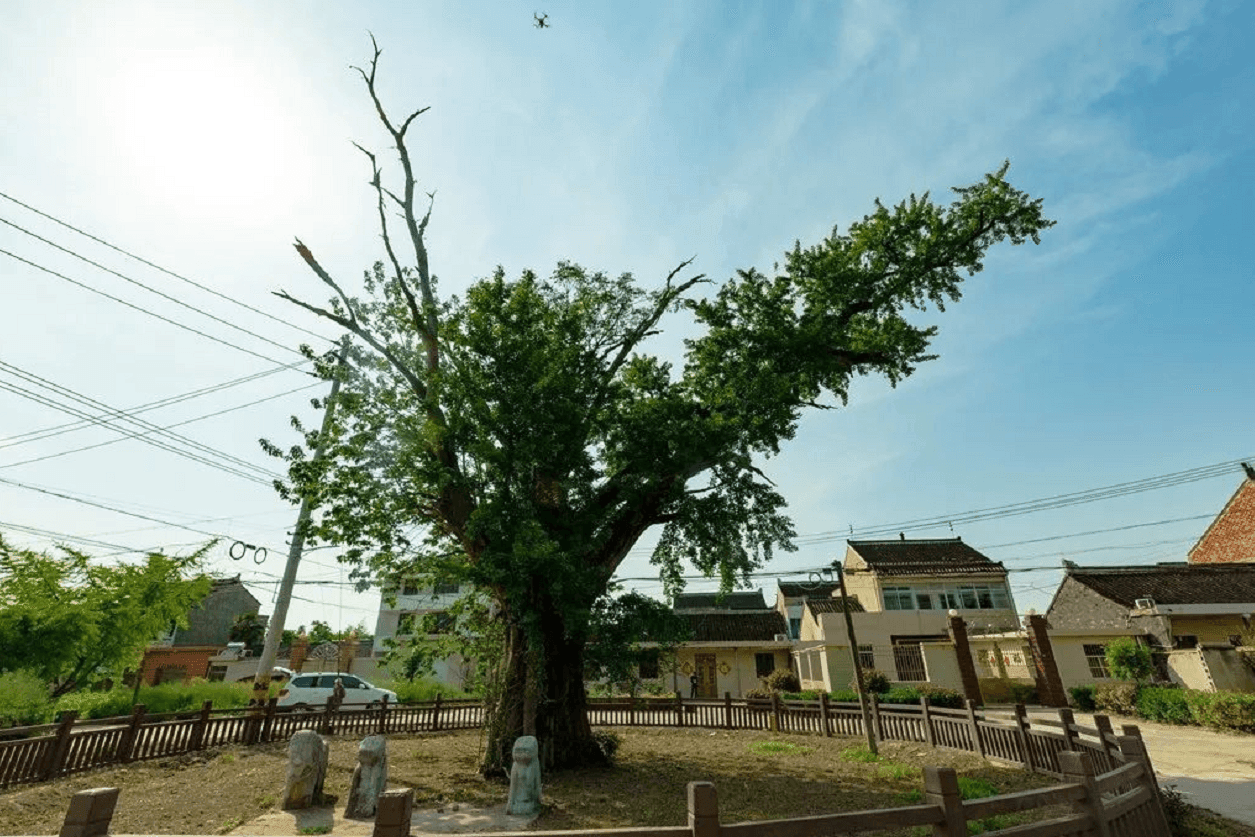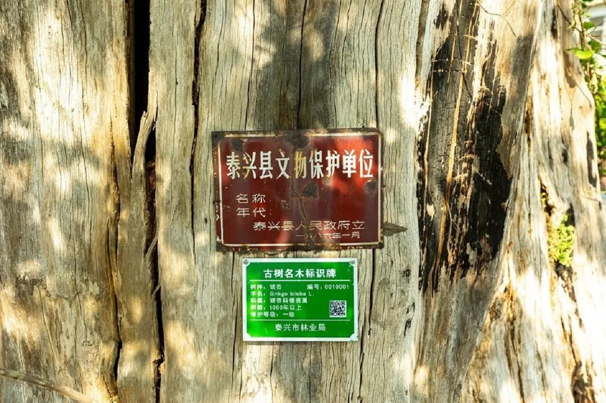自此后,古銀杏樹不再結(jié)果,變?yōu)樾坌詷洌康绞诨竟?jié),花香四溢,很多百姓采花粉回去授之。銀杏樹廣傳天下,最茂盛的時候,人們坐在樹下乘涼,一抬手就能觸到樹枝。由于遭天災(zāi)、雷擊等影響,銀杏樹被從中劈斷,神奇的是,第二年從中長出雜樹,銀杏樹也再次長出新的枝椏,繁衍至今。 后來,人們將此樹供奉起來,每逢初一、十五都會上香、叩頭。有很多小孩身體不好,或家長怕麻煩,都是直接將小孩寄扣在這里,每年正月十五、端午、中秋都帶小孩前來祭拜! 相傳,在栽種此樹時,劉伯溫還留下石馬、石獅守護(hù)。后經(jīng)戰(zhàn)亂、時代更迭,石馬、石獅不見蹤影。1986年1月,泰興縣人民政府正式掛牌,確定此樹為文物,進(jìn)行保護(hù);1990年泰興林業(yè)局進(jìn)行第一次維護(hù),用磚頭砌圍墻;2011年泰興林業(yè)局進(jìn)行第二次維護(hù),改為鐵籬圍墻,并多方打聽尋找石馬、石獅下落,將放在皂角大站做擋水墻的石獅從墻中鑿出來,將深埋在河底的石馬打撈出來,最后將一對石獅放在鐵籬大門兩側(cè),石馬放在鐵籬內(nèi)大樹西邊。 2019年9月,泰興市自然資源規(guī)劃局再次對此樹實施保護(hù)。