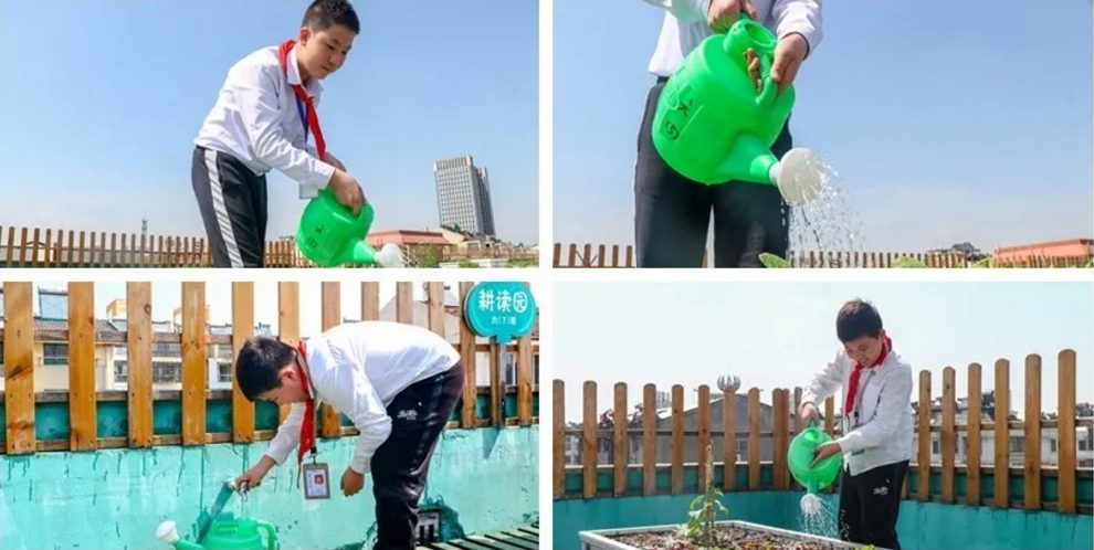 空中百草園”,由附小一屆又一屆畢業(yè)班的孩子們接手管理,從種子的選擇,到澆水、施肥、治蟲、收獲,全權(quán)交給這些孩子們。