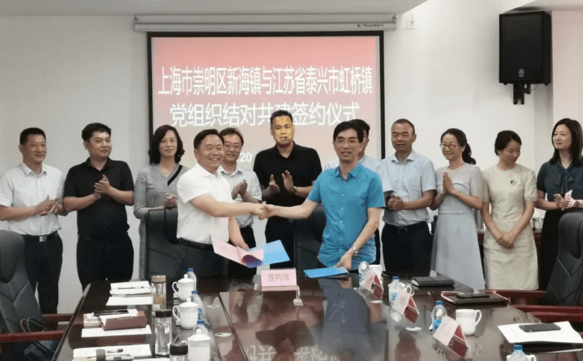 6月19日,江蘇省泰興市虹橋鎮(zhèn)黨委與上海市崇明區(qū)新海鎮(zhèn)黨委簽署黨組織結(jié)對共建協(xié)議書,標(biāo)志著這對跨省黨建聯(lián)盟正式啟動。 新海鎮(zhèn)位于崇明島北沿,虹橋鎮(zhèn)地處長江北岸,藍(lán)天、碧水、凈土,生態(tài)優(yōu)先、綠色發(fā)展,是兩地共同的發(fā)展訴求。