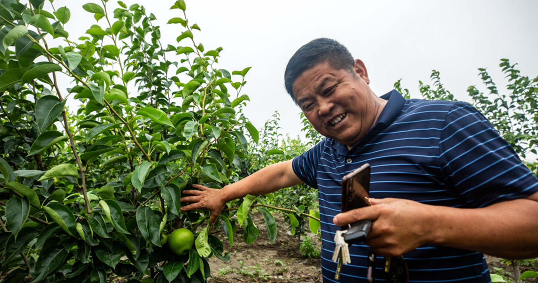 剛剛下過雨,顧不上一路的泥濘,江蘇泰興根思鄉(xiāng)井坔村黨總支副書記李建華和妻子一起,深一腳淺一腳地來到自家梨園。今年的梨長勢很好,一只只已經(jīng)有拳頭般大小,再有10多天就可以上市。李建華得抓住最后的時間,給梨樹修剪修剪,為最后的“沖刺”做準備。