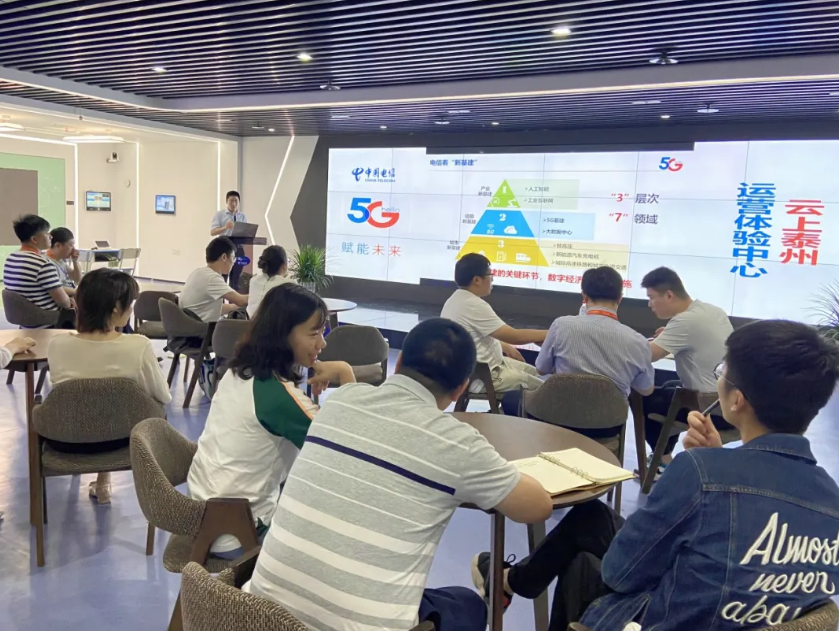 接著,他們來到泰州電信未來信息館,深度體驗大數據、云計算、物聯網、AIOT(人工智能物聯網)、5G技術在智慧生活、智慧社區、智慧工廠、智慧城市、智慧旅游、智慧校園、智慧醫療等多方面的應用,并認真聆聽泰州電信業務骨干講授關于5G新基建、數字政府、智慧小鎮、智慧小區、智慧物業等內容,加深了對5G的了解。