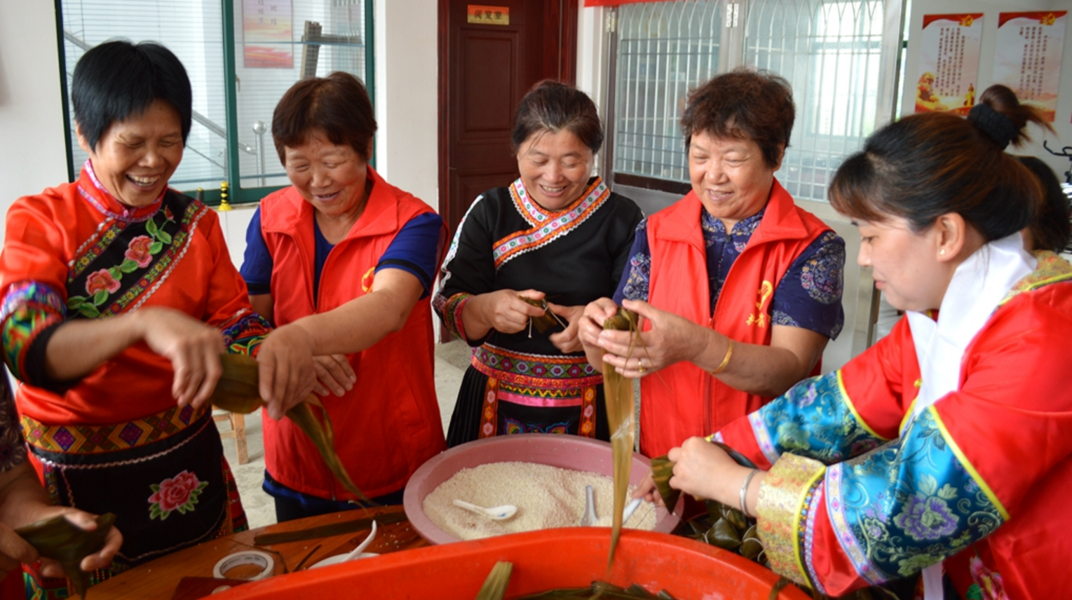 “雖然平時(shí)不包粽子,但是家里粽子多,都是鄰里送的。今年,我也要贈(zèng)送給他們。”苗族的石銀花在志愿者指導(dǎo)下學(xué)包粽子。“今年端午,村里的志愿者,為我們購(gòu)買(mǎi)了傳統(tǒng)民族服飾。”滿(mǎn)族婦女武翠娟穿著靚麗的民族服飾,很是開(kāi)心。在虹橋鎮(zhèn)通石村的“少數(shù)民族之家”,歡笑聲不斷,10多名少數(shù)民族同胞和志愿者歡聚一堂,自己動(dòng)手包粽子,體驗(yàn)大家庭的幸福與快樂(lè)。