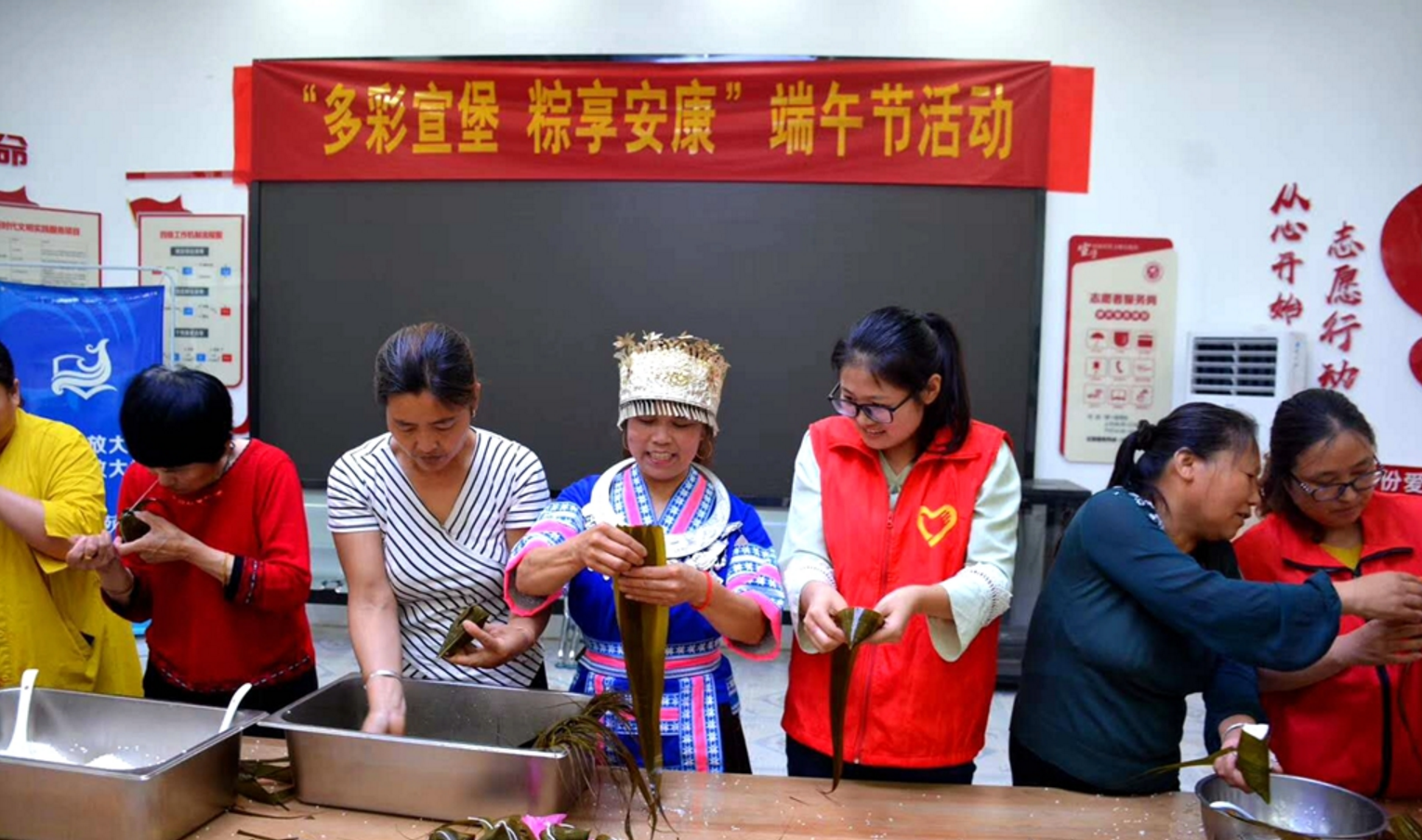 在宣堡鎮(zhèn)新時(shí)代文明實(shí)踐所,《七律·端午》《端午思》《他鄉(xiāng)的端午》《浣溪沙·端午》……一首首經(jīng)典詩(shī)歌,讓大家感受到了端午節(jié)的文化內(nèi)涵,體會(huì)到了傳統(tǒng)節(jié)日的獨(dú)特魅力。現(xiàn)場(chǎng)40多名志愿者和部分少數(shù)民族婦女共同包粽子,一起體驗(yàn)民俗、享受快樂(lè)。