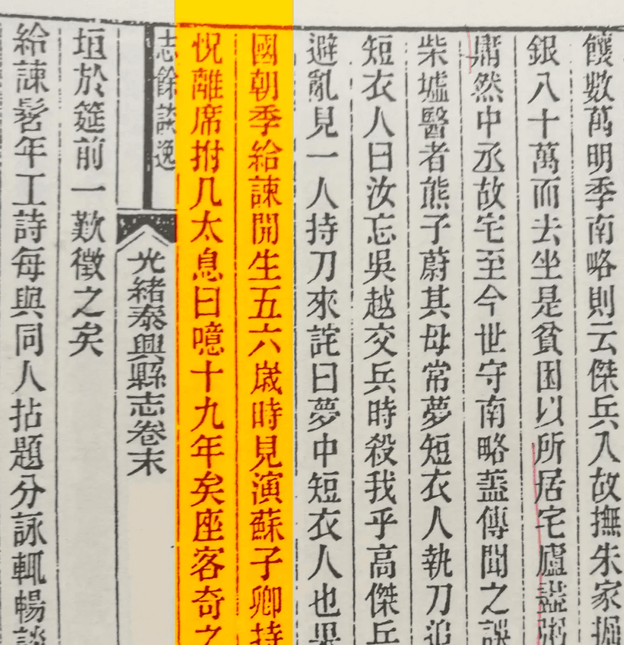 據光緒《泰興縣志》記載,老季的大兒子季開生五六歲時,觀看昆劇《蘇子卿持節牧羊》的演出,當時就被蘇武十九年持節不屈的節操所感動,小小年紀竟發出人生感嘆,“座客奇之”。俗話說:“三歲看小,七歲看老。”果然,后來季開生成為大清開國第一諫臣。