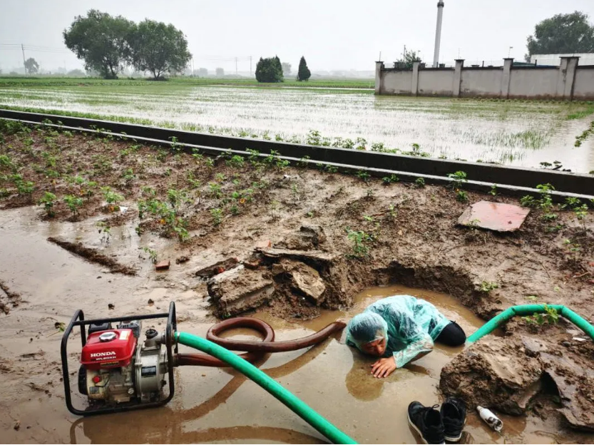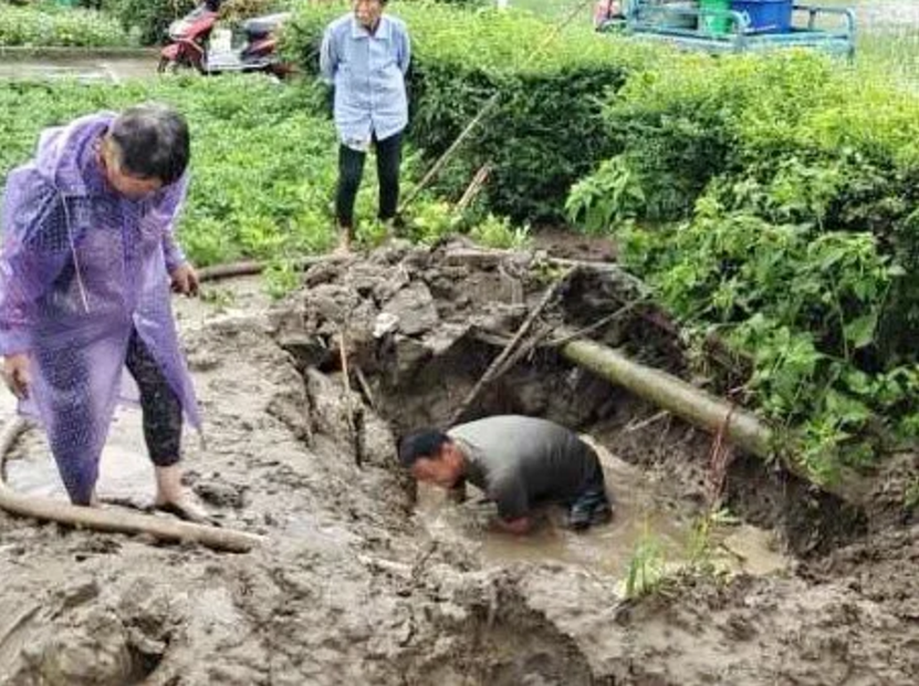 近日的大暴雨等惡劣天氣使水稻田正常排水受到影響。在泰興市曲霞鎮(zhèn)鎮(zhèn)西村陳公堂3組,隨著雨越下越大,稻田里的水位以肉眼可見的速度上漲,村后備干部趙磊二話不說,鞋子一脫就跳入了出水坑管道,抓住水泵管道細(xì)細(xì)排查堵塞原因。泡在水里1個(gè)小時(shí)之后,他終于把管道內(nèi)的堵塞垃圾、石塊全部取出,農(nóng)田排水恢復(fù)正常,及時(shí)保護(hù)了地里的莊稼。 趙磊是村里的入黨積極分子,他說:“汛情是對我們的一次考驗(yàn),群眾有需要,我就沖在前!”