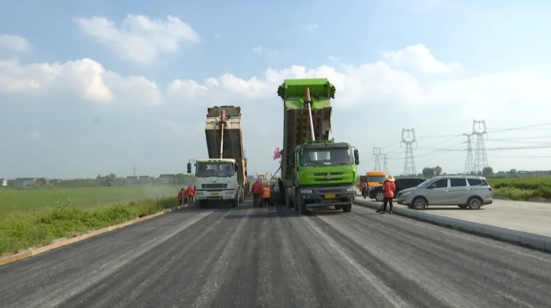 今年以來,受新冠肺炎疫情以及梅雨天氣影響,232省道泰興段一期工程及504省道交通重點工程施工受到一定影響。8月份以來,施工人員戰高溫、搶進度。8月5日下午,室外烈日當空、酷暑難耐。在232省道泰興段一期工程現場,2臺攤鋪機、5臺壓路機以及10多輛運輸車密切配合,加緊進行瀝青試驗段攤鋪施工。新攤鋪的熱態瀝青混合料散發出滾滾熱量,現場施工人員汗水濕透了衣衫。