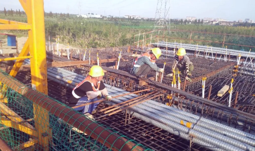 同樣是在504省道工程施工現場,施工人員冒著炎熱,進行兩泰官河大橋主橋0#塊澆筑,近期開始主跨箱梁懸澆施工。