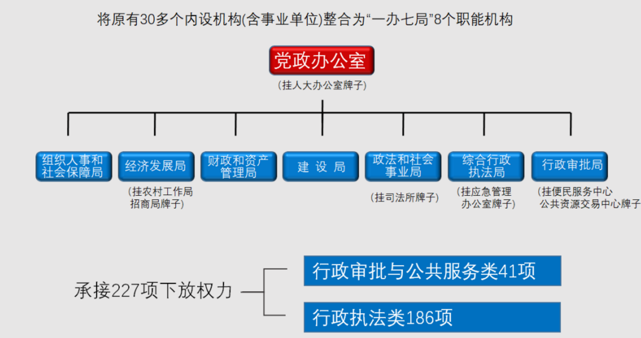 據了解,泰興市《實施方案》明確了7個方面23項工作任務,以加強黨的全面領導為統領,充分發揮鄉鎮(街道)黨(工)委領導作用。突出強調健全黨的組織體系,在鄉鎮(街道)職能機構掛牌設立黨建工作辦公室,配備組織員。完善鄉鎮(街道)黨(工)委運行機制,實行黨建工作分工負責制,強化黨建責任和任務“雙清單”管理。突出政治功能,推動基層黨委、支部、黨員和群眾四個主體聯動共進。 《實施方案》提出,強化基層政務服務體系建設,實現審批服務一窗口。綜合設置審批服務機構,實現“一口受理、一窗通辦、集成服務”;相關部門設在鄉鎮(街道)的服務窗口和水電氣等民生服務窗口全部進駐為民服務中心;建立專業化代辦幫辦服務隊伍,選優配強骨干力量。優化政務服務流程,實行“馬上辦、網上辦、就近辦、一次辦”,積極推進“不見面審批(服務)”改革。創新政務服務模式,建立健全鄉鎮(街道)、村(社區)兩級聯動的便民服務網絡,推進同城通辦的公安出入境、稅務、公積金等民生服務類事項進駐黃橋等重點中心鎮的便民服務平臺,輻射周邊鄉鎮。 推進基層綜合行政執法體制改革,實現綜合執法一隊伍。統一組建綜合行政執法機構,整合鄉鎮(街道)現有執法力量和資源,組建鄉鎮(街道)綜合行政執法局,實現“一支隊伍管執法”。強化綜合行政執法能力建設,每個鄉鎮(街道)配備不少于4名具有行政執法資格的人員以及相應執法裝備,并配備一定數量的執法輔助人員。探索綜合行政執法新模式,對專業性較強、執法要求較高的執法行為,采取“鎮(街)呼市應”的方式,由市相關部門配合鄉鎮(街道)開展執法工作。完善綜合行政執法監管機制,規范執法程序和行為,推行執法全過程記錄、行政執法公示、重大執法決定法制審核等制度。