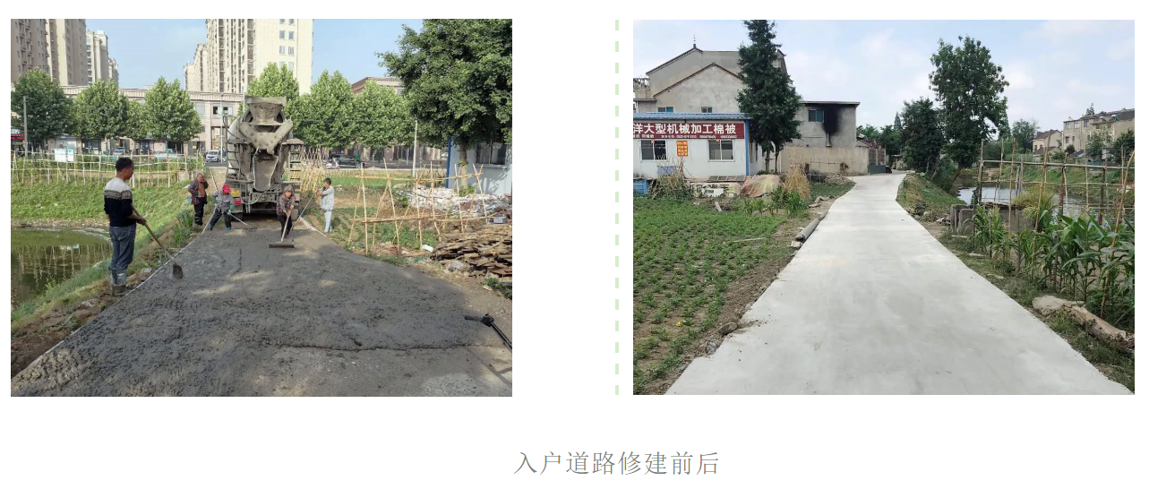 以實干護航,鋪就脫貧幸福路 工作隊通過深入走訪群眾,了解民情民意,并發揮自身優勢,幫助村里解決實際困難。工作隊隊員、西寺橋村“第一書記”王宏斌剛到村里工作時,發現有些貧困戶家門前的入戶道路未完全硬化,不便于生產生活。為此,他多方籌措資金,幫助協調土地糾紛,最終花6天的時間修了3條總長180米的入戶水泥道路。東閭村主干道狹窄,交通不便,工作隊幫助協調,解決了工程所需的部分資金,目前道路改擴工程正如火如荼地推進。