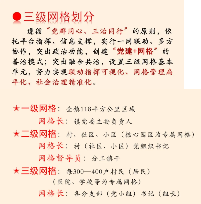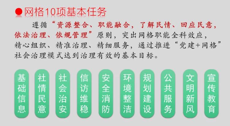 會議指出,要結(jié)合濱江鎮(zhèn)實情,切實做到理論聯(lián)系實際,探索建立“黨建+網(wǎng)格”的網(wǎng)格化社會治理模式,將“黨支部建在網(wǎng)格上”,加強基層黨組織對網(wǎng)格工作的領導,激發(fā)黨員群眾積極參與、多元共治的社會治理活力,著力消除基層社會管理與服務的“空白地帶”。 什么是“黨建+網(wǎng)格”社會治理模式?