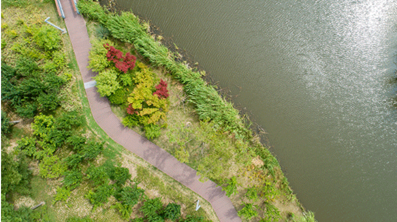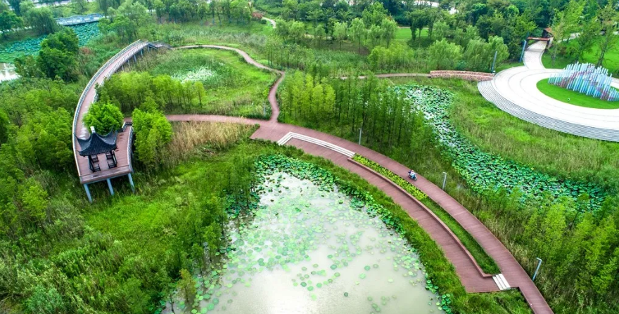 龍河灣公園,2017年建成開(kāi)放,占地約16萬(wàn)平米。步入公園,綠色清新的氣息撲面而來(lái),野蜂飛舞、流水潺潺、鮮花盛放。