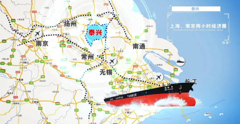 泰興因江而生、依江而興,擁有1172平方公里地域,下轄16個鄉(xiāng)鎮(zhèn)(街道)、3個省級開發(fā)區(qū)、3個市級園區(qū)。萬里長江向東奔流,流入泰興昂首向南,然后拐彎向東、直奔大海,24.2公里的長江岸線將泰興鑲嵌其中,呈現(xiàn)出一個“聚寶盆”似的“弧形洼地”。