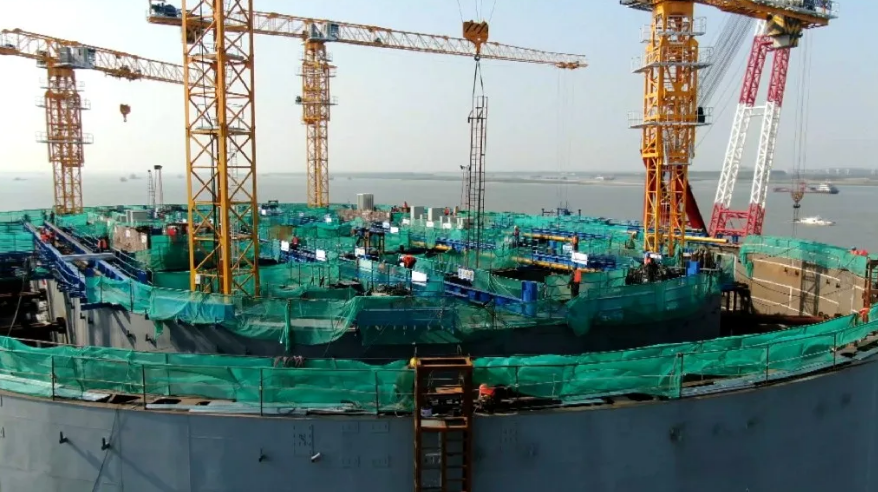 當前,常泰長江大橋進入施工關鍵節點,施工人數超過300人,他們承擔著取土下沉、水上接高、井壁混凝土澆筑等繁重工作。大家克服高溫酷暑帶來的不便,順利完成各關鍵節點施工,目前整個項目穩步推進。“兩家項目部充分研究沉井施工的項目復雜程度,備足了工裝設備。目前,兩個主墩沉井順利完成了首輪取土下沉,姿態可控,五號墩鋼沉井目前正在進行取土設備及平臺的拆除工作,為最后一次水上接高做準備,六號墩鋼沉井正在進行井壁混凝土澆筑,澆筑完成后,將進行最后一次水上接高工作。”中鐵大橋監理常泰長江大橋CT-JL-1標總監辦總監李超說。