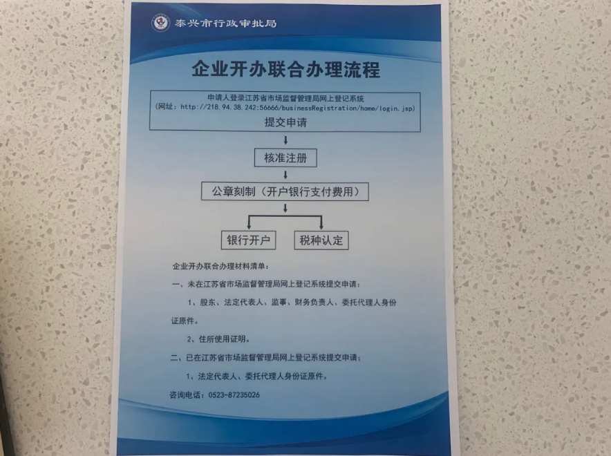 企業(yè)開辦專區(qū)整合集中了涉及相關(guān)部門的企業(yè)設(shè)立登記、印章刻制、銀行開戶、稅種認定等開辦企業(yè)的四個環(huán)節(jié),并且提供免費代辦、免費刻章、免費銀行開戶“三免費”服務(wù)。泰興市行政審批局市場準入科副科長高巖介紹:“我們將四個環(huán)節(jié)整合一起,實行一窗受理集成服務(wù),所有環(huán)節(jié)從兩個工作日縮短到0.5個工作日。”