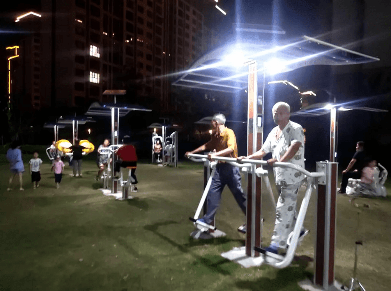 晚上8點(diǎn),鑫泰路與張陳路交界處的健身點(diǎn)已經(jīng)“滿員”。自8月投入使用以來,這里已然成為新的“網(wǎng)紅”打卡點(diǎn),不少人“慕名而來”。