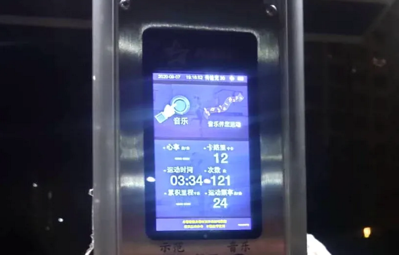 與普通的健身器材不同,當(dāng)開始鍛煉時(shí),器材上的智能顯示屏?xí)詣狱c(diǎn)亮,實(shí)時(shí)顯示運(yùn)動數(shù)據(jù)。運(yùn)動過程中也可以按鍵實(shí)現(xiàn)相應(yīng)功能的切換,還可以選擇不同的音樂。