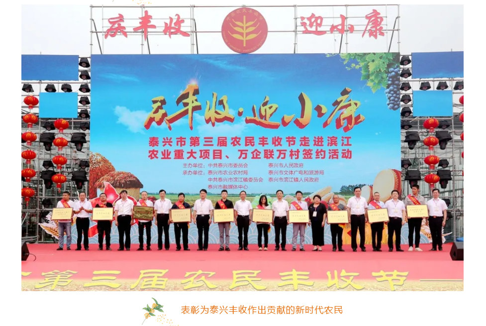 五谷豐登唱金秋,載歌載舞慶豐收 今年以來,泰興市積極克服疫情影響,加快補齊高水平全面小康“三農(nóng)”領(lǐng)域突出短板,持續(xù)抓好農(nóng)業(yè)穩(wěn)產(chǎn)保供和農(nóng)民增收,農(nóng)業(yè)農(nóng)村各項工作穩(wěn)步推進,糧食生產(chǎn)穩(wěn)定度、生豬存欄量、農(nóng)業(yè)農(nóng)村重大項目、萬企聯(lián)萬村等重點工作中期考核居泰州第一,農(nóng)村居民人均可支配收入達11955元、同比增長2.7%,所有經(jīng)濟薄弱村和低收入農(nóng)戶實現(xiàn)穩(wěn)定脫貧。 今年好收成,未來更期許
