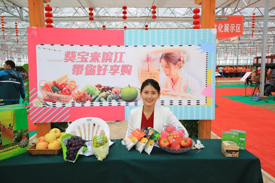 車厘子、紅心獼猴桃、翠冠梨、有機大米、色拉油,還有蒲地藍……濱江特產(chǎn)擺滿了直播桌。