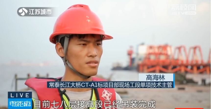 常泰長江大橋CT-A1標項目部現場工段單項技術主管高海林表示:目前七八兩層樓高段已經吊裝完成,正在進行焊接以及外接圍堰的吊裝工作,在保證安全、質量、環保的前提下,各個部門履行本職工作,協同作戰,確保大橋工程建設有序向前推進。