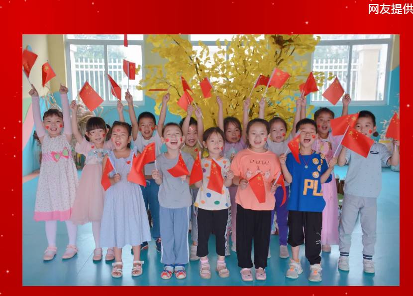 綠色的草地,鮮艷的國旗,代表著我們的愛國心!