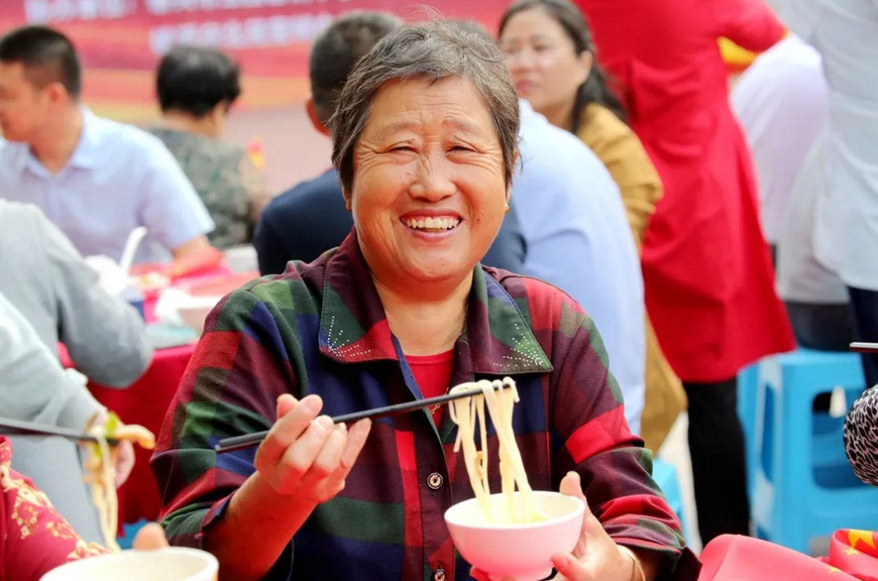 一盆盆熱氣騰騰的面端上桌,你一筷我一筷,每個人臉上洋溢著幸福和快樂,為祖國獻上美好祝愿的同時,盡情享受著節(jié)日帶來的歡樂。