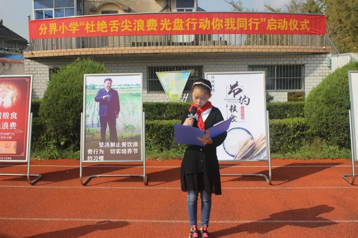 分界小學(xué) 為了進(jìn)一步弘揚(yáng)中華民族傳統(tǒng)美德,提高學(xué)生們珍惜糧食、勤儉節(jié)約的意識,分界小學(xué)舉行了“拒絕舌尖浪費(fèi) 光盤行動你我同行”主題活動啟動儀式。