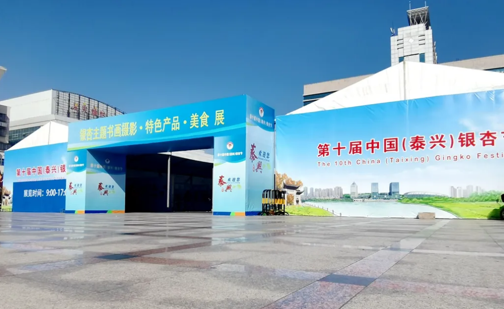 10月23日上午,在泰興市鼓樓廣場,多種銀杏產品亮相銀杏節特色產品展銷會。