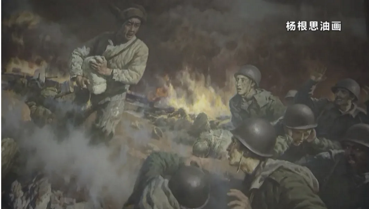 當敵人發起第9次進攻時,楊根思命令通訊員把重傷員背下陣地,又命令機槍手把打光子彈的重機槍撤下陣地,自己孤身一人留下堅持戰斗。打出最后一顆子彈后,楊根思埋伏在高地上,當美國兵快到山頂時,他抱起一個炸藥包,拉響導火索,沖向敵群,與40多個敵人同歸于盡。