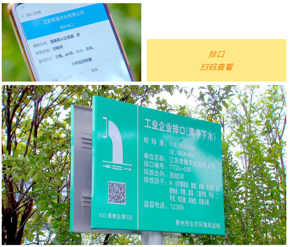 泰興經濟開發區實施入河排污口截污控制工程,所有企業排污口均懸掛明顯的入河口標志牌,每一個排放口印上二維碼,人人都可通過這些二維碼了解排放口信息,隨手舉報偷排行為。