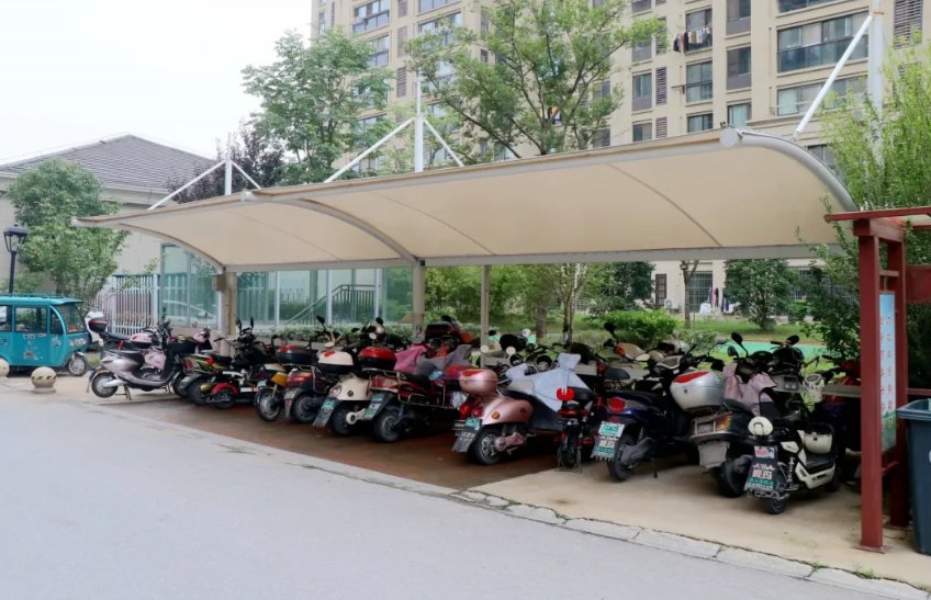 截至目前,城區第一批34個住宅小區智能充電棚的安裝工作已經到位,并陸續投入使用。第二批24個小區智能充電棚的安裝工作也已啟動。在興泰華庭小區,23個智能充電棚已完成鋼結構安裝,正在進行噴漆和覆膜施工,建成后共設置充電插口300多個。