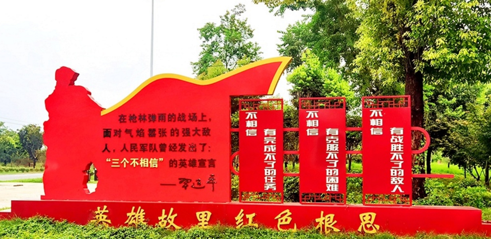 鄉(xiāng)風(fēng)文明,滋潤民心 根思村是中國人民志愿軍特級戰(zhàn)斗英雄、新中國最美奮斗者楊根思的故鄉(xiāng)。一直以來,根思村吸收紅色文化優(yōu)勢,致力優(yōu)化環(huán)境加大美化力度,集鎮(zhèn)沿街設(shè)立了3座楊根思“三個不相信”精神紅色雕塑,道路兩側(cè)燈桿道旗、建筑圍擋、戶外公益廣告等載體定期更新社會主義核心價值觀、文明城市創(chuàng)建等宣傳標(biāo)語,打造群眾家門口的“紅色文化一條街”。“村黨總支一班人帶頭開展‘紅色故事會’、‘不忘初心’主題教育、‘紅色講師’宣講等紅色文化宣教活動,讓村間田頭飄滿紅色鄉(xiāng)風(fēng)。”根思村黨總支書記楊偉介紹。