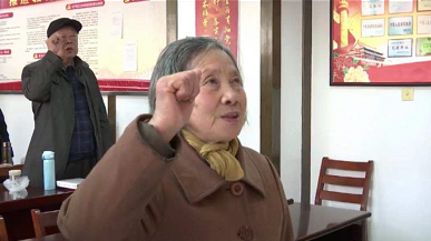 14日上午8點(diǎn)30左右,泰興市教育局老干部總支全體黨員一致同意,83歲的周靜芳加入中國共產(chǎn)黨,她面對黨旗,進(jìn)行入黨宣誓。