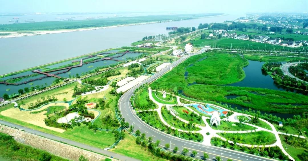 泰興長(zhǎng)江生態(tài)濕地和綠色廊道工程北起洋思港,南近六圩港,全長(zhǎng)12公里,總綠化面積280萬(wàn)平方米。