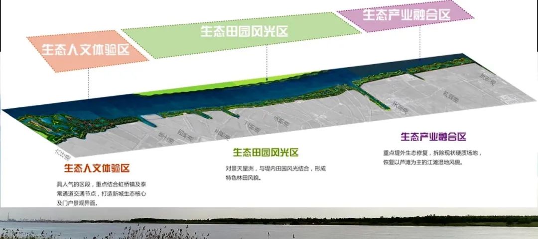 將12公里生態(tài)林帶劃分為生態(tài)產(chǎn)業(yè)融合區(qū)、生態(tài)田園風(fēng)光區(qū)、生態(tài)人文體驗(yàn)區(qū)。