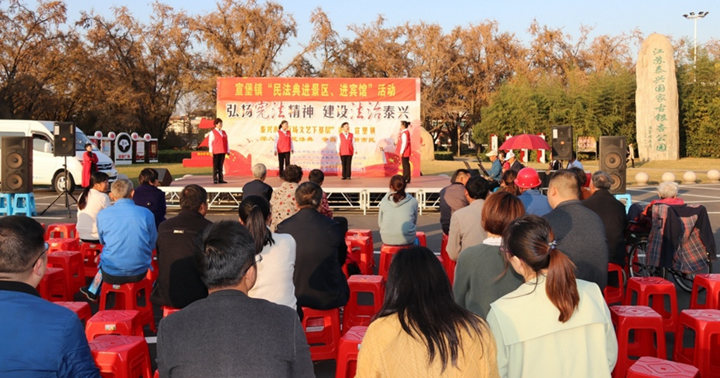 “民法典今年正式施行了,上次舉辦講座,發的宣傳冊你們有沒有看啊?”“我們看了,宣傳冊子里面關于物權的、婚姻家庭的、繼承的,這些方面內容都有,通俗易懂啊。”在江蘇泰興宣堡銀杏森林公園,不少百姓圍坐在一起,觀看法治文化下鄉演出。泰興市織密法治“三張網”,推進鄉村治理邁上新臺階。