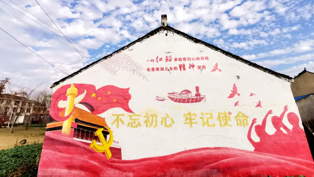 一葉紅船,承載著初心的召喚,也是南湖兒女的精神家園——摘自南湖村紅船廣場主題墻繪