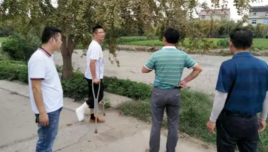 臺風“利奇馬”來襲,丁輝擔心貧困戶房屋安全,逐戶查看,由于雨大路滑,不慎扭傷了腳,造成右后踝骨骨折。臥床休養半月后,他不顧家人的反對,拄著拐杖又投入到脫貧攻堅一線工作中,村民都打趣他是“拐棍書記”。