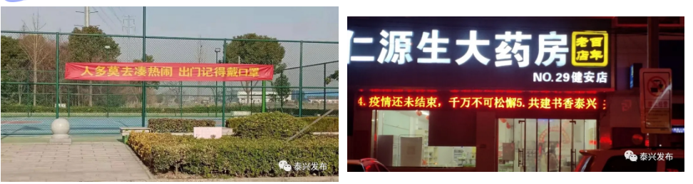 強化宣傳引導,構建科學防控體系。“四支隊伍”充分發揮各自專職監管員職能,多渠道、全方位加強宣傳引導工作。鎮疫情防控指揮部及時推送最新疫情防控要求和工作指引;村居利用喇叭廣播定時播放《疫情防控“十項注意”》,在村主干道張貼各類宣傳標語,組織村干部、中心戶長勸導村民減少人員聚集;企業、學校、商場超市等各類人員密集場所,設置佩戴口罩、蘇康碼查驗等標識,利用led顯示屏、宣傳欄等及時發布疫情防控最新要求。