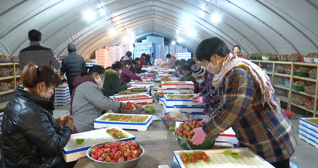 “今天園內草莓采摘了400多斤,我們都分裝好了,直接送到這里,方便售賣,我們種植戶也省心不少。”在江蘇泰興濱江現代農業科技產業園草莓分揀中心,種植戶王成成將采摘的草莓送到分揀中心,經過工作人員包裝后,直接銷售出去。進入冬季,濱江現代農業科技產業園內的草莓陸續上市,為了擴大銷售,園內種植戶主動聯系水果商超,設立分揀中心,打通銷售渠道。該分揀中心的設立不僅解決了園區內草莓種植戶的銷路問題,還輻射帶動了園區周邊鄉鎮的草莓種植戶。