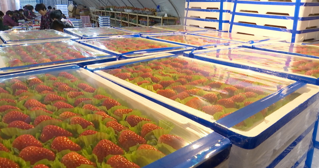 “我們現在直接跟大超市合作,不跑市場,不經過供應商,從產地源頭直接到公司,天氣正常的情況下,一天的量在8000斤到一萬斤。”分揀中心現場負責人張波介紹。分揀中心將匯總到這里的草莓按照大小分類包裝,集中送往上海等地的水果超市。“因為草莓屬于時鮮貨,保存周期只有兩三天的時間,而我們園區種植面積大,產量多,因此直送商超減少了流通環節,不用擔心草莓的保存,保證了種植戶的利益。”濱江現代農業科技產業園辦公室負責人王召峰介紹。